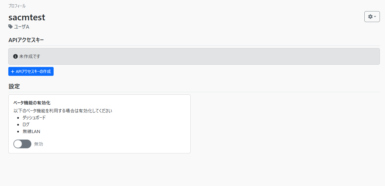 ログイン中のアカウントに対してベータ機能の有効化設定を行うことができます。