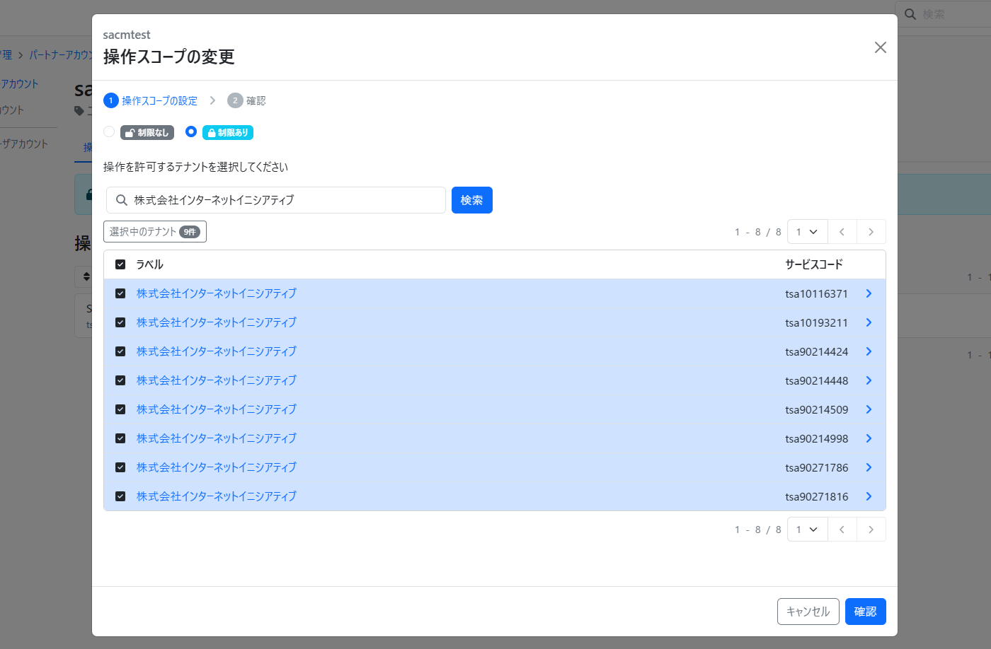 操作スコープ設定機能を使用することで、操作可能なテナントの設定を行うことができます。