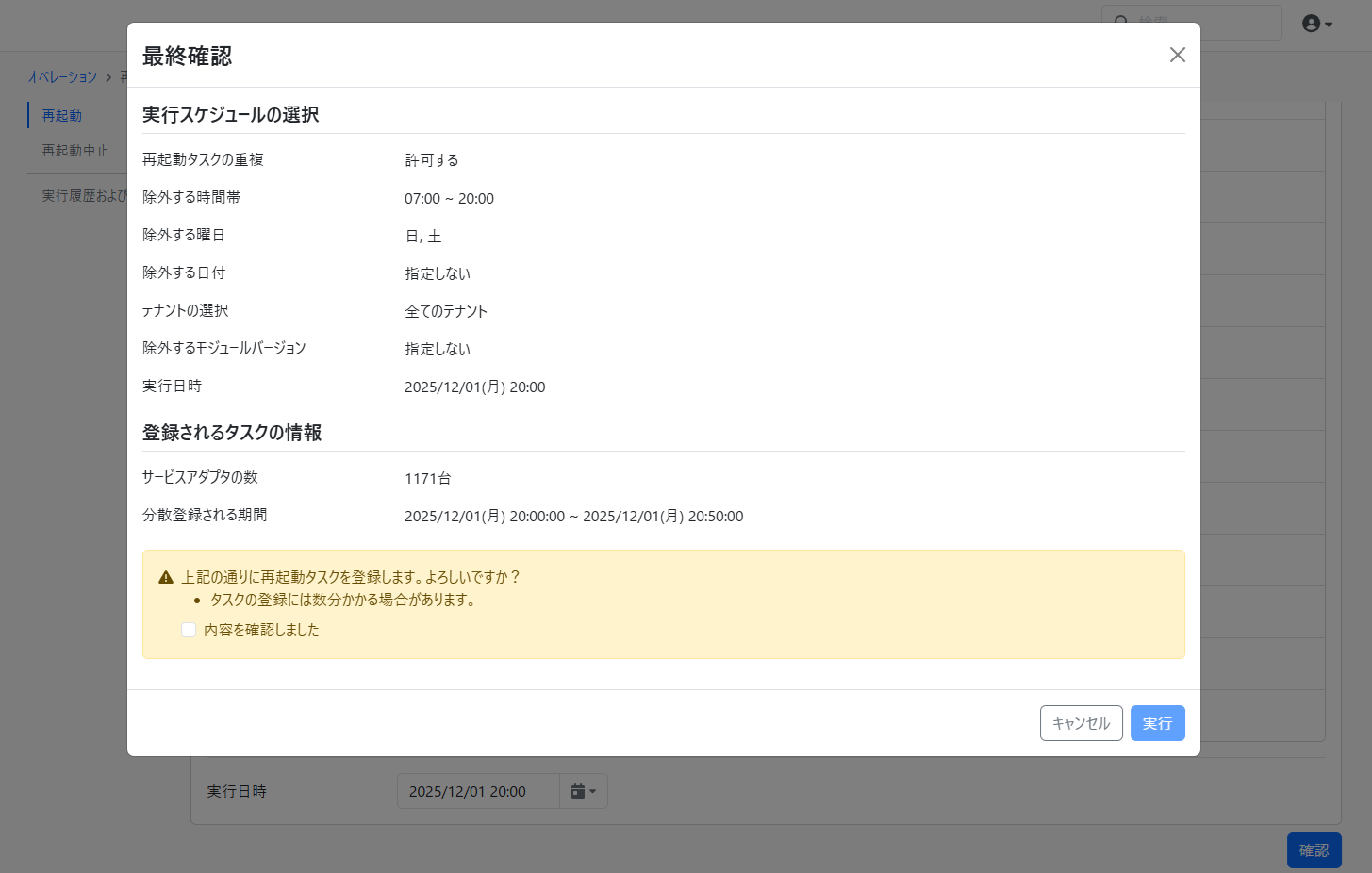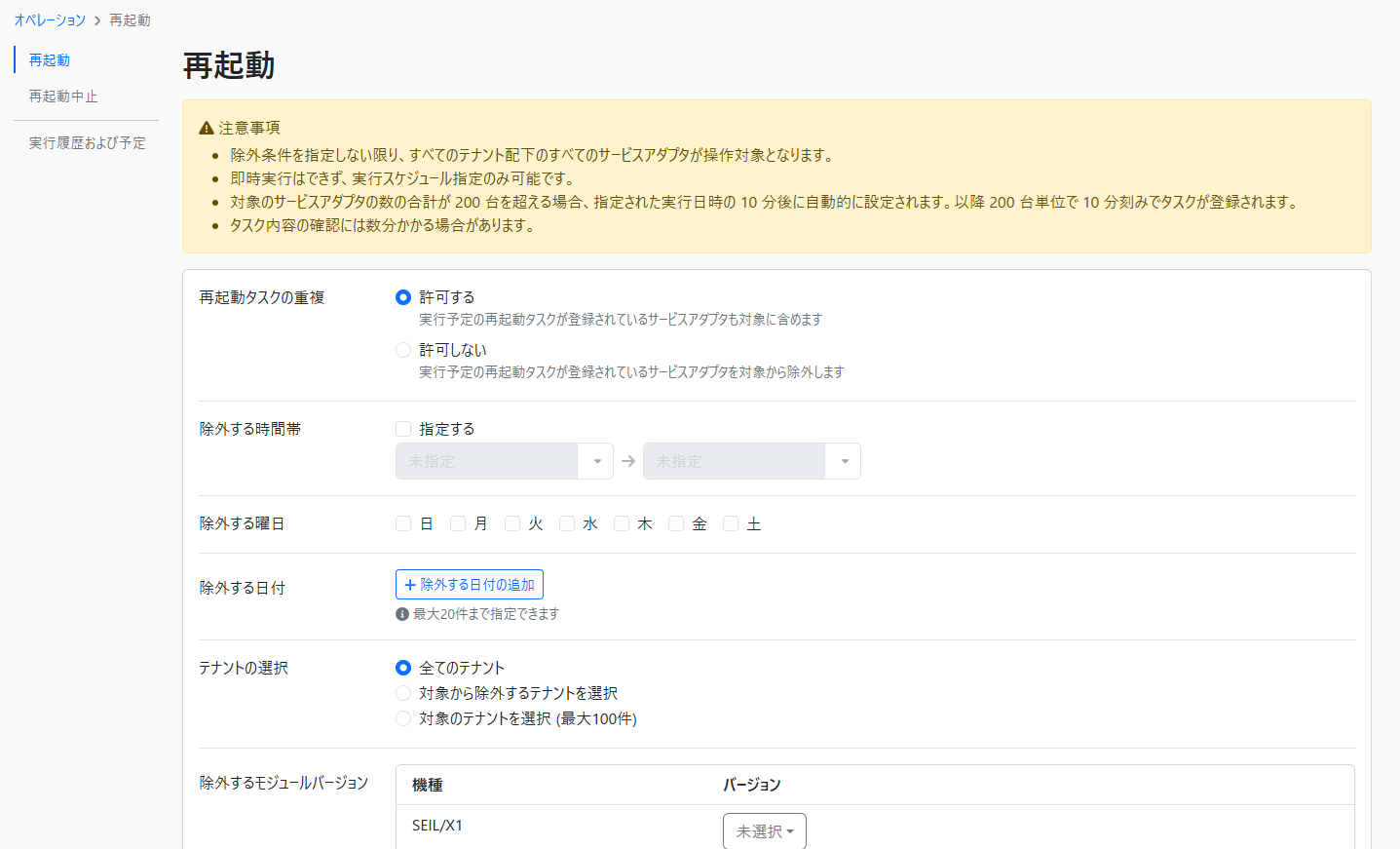 全てのテナントを横断してテナント単位で一括で再起動タスクの登録操作を行うことができます。