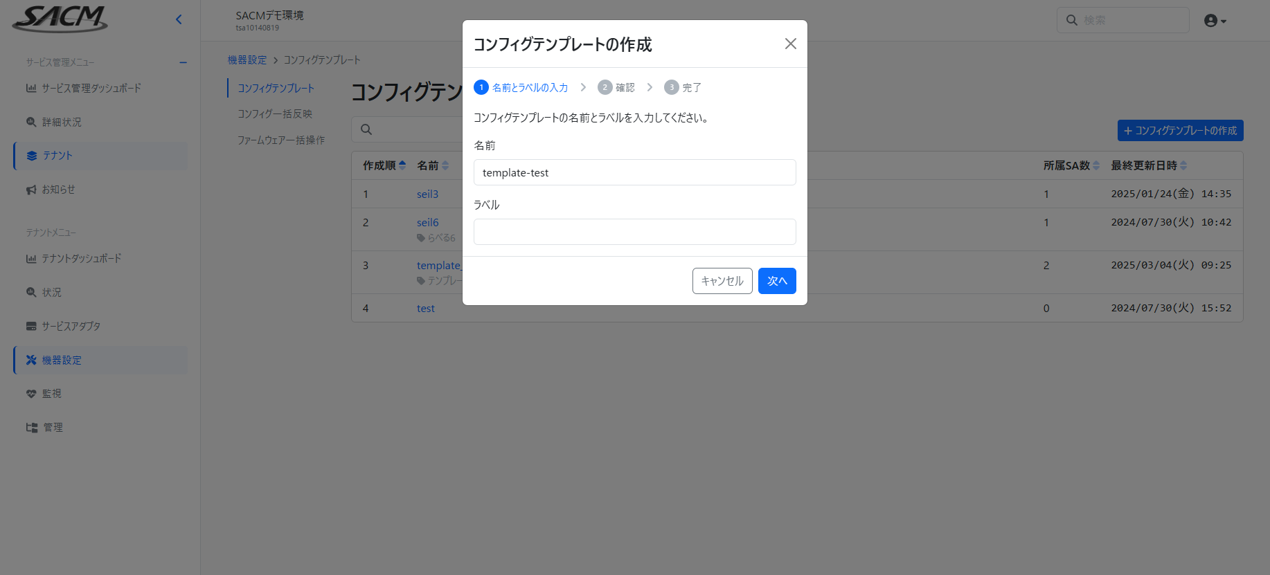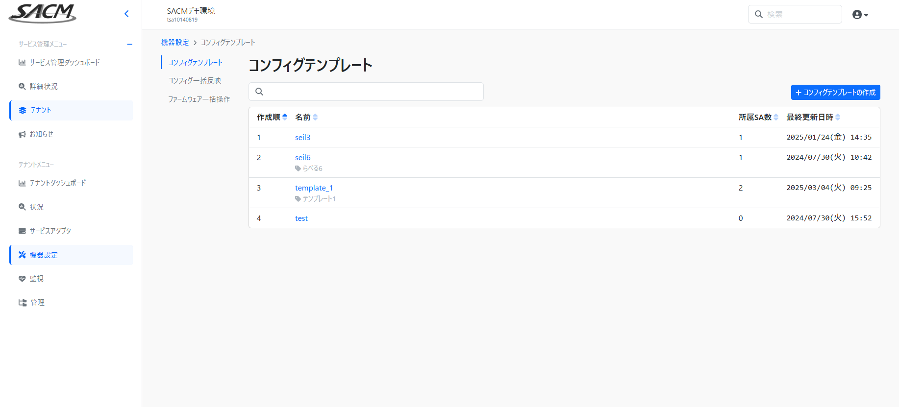管理しているコンフィグテンプレートの一覧が表示されます。