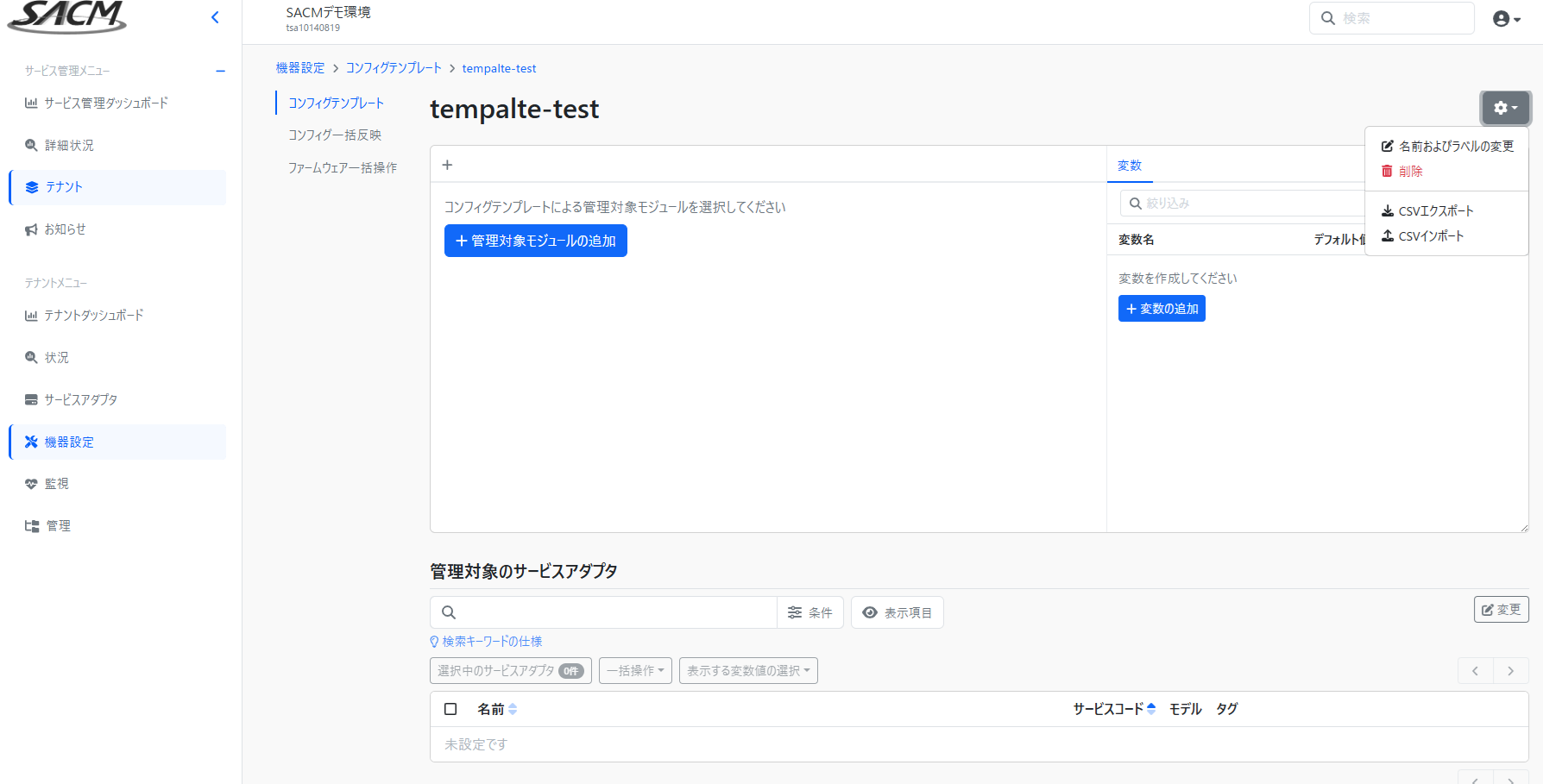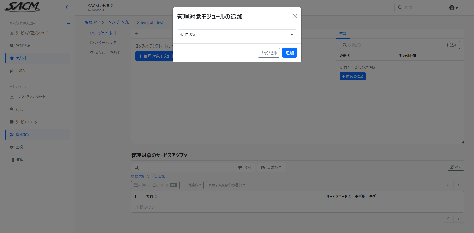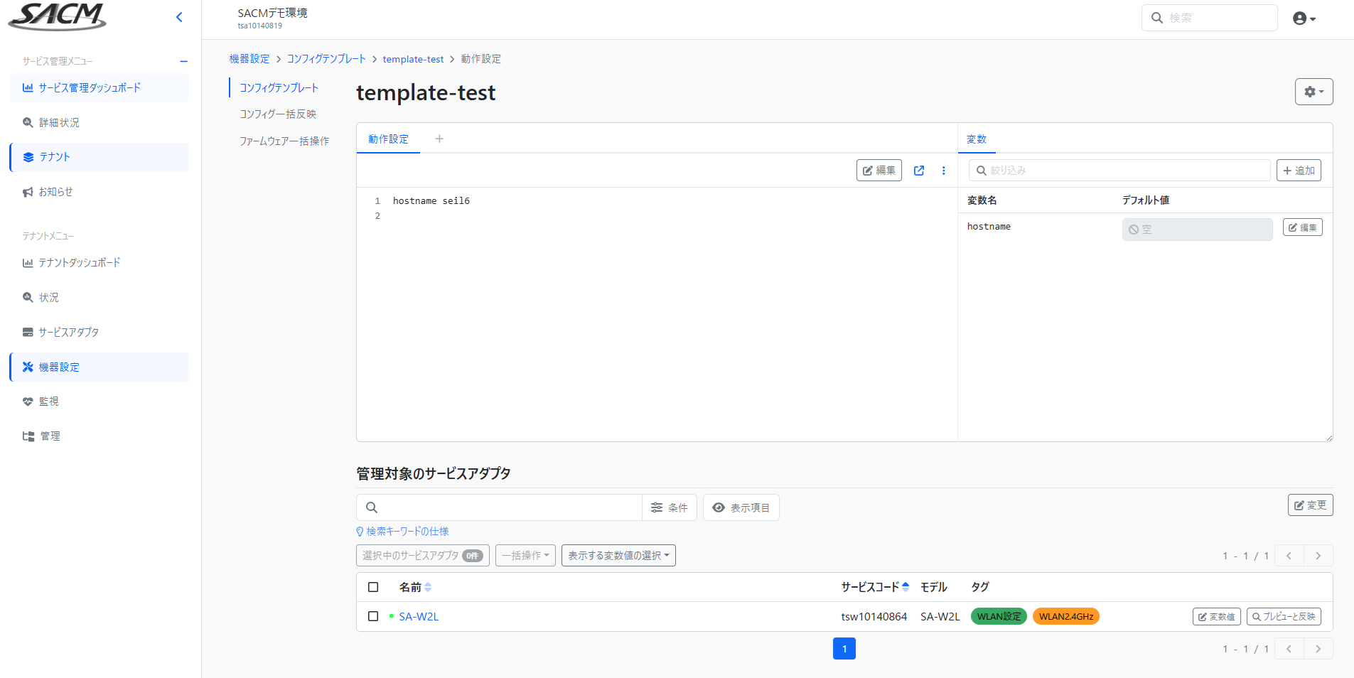 サービスアダプタを所属することでサービスアダプタ単位での変数値の変更やコンフィグテンプレートの反映ができるようになります。