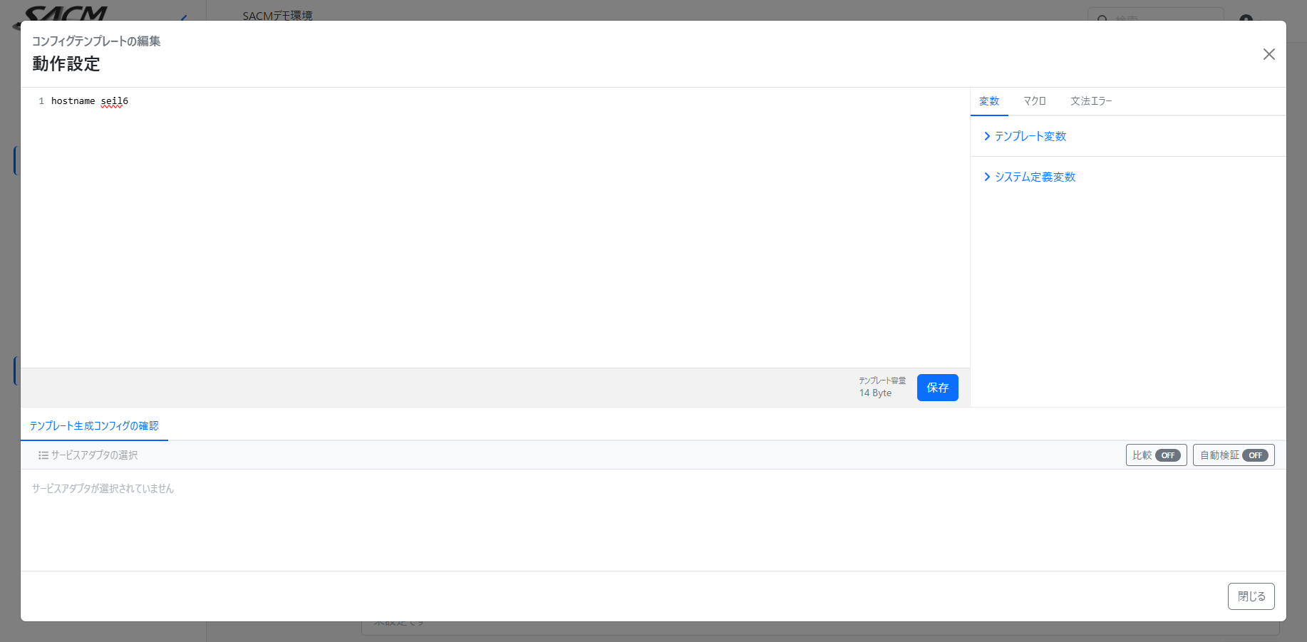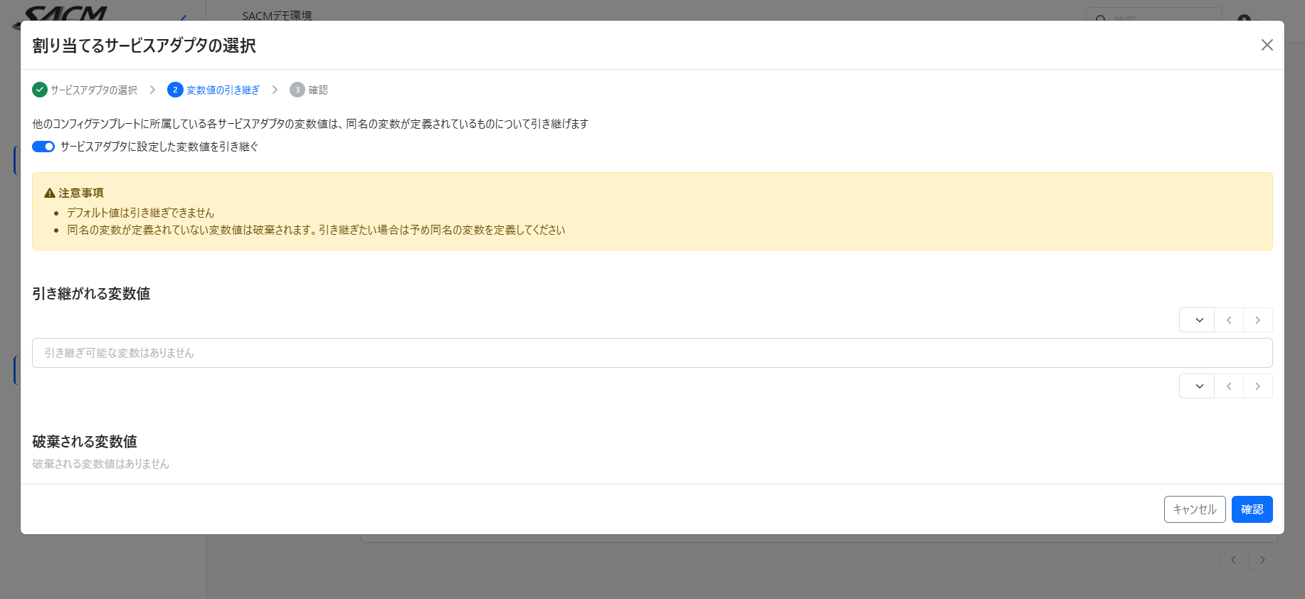 「サービスアダプタに設定した変数値を引き継ぐ」を選択することで別のコンフィグテンプレートから移動する際に変数値を引き継ぐことができます。