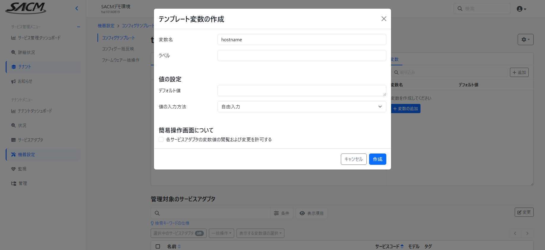 「各サービスアダプタの変数値の閲覧および変更を許可する」はエンドユーザによる変数の変更およびコンフィグ反映を許可する項目になります。