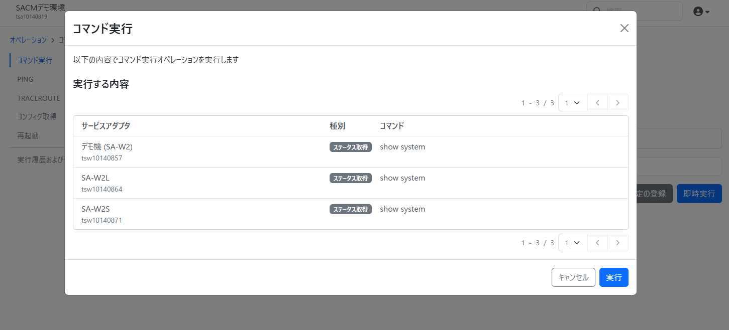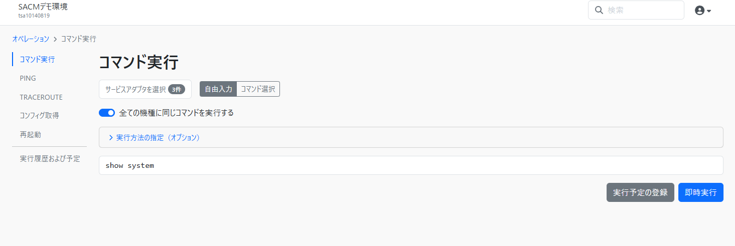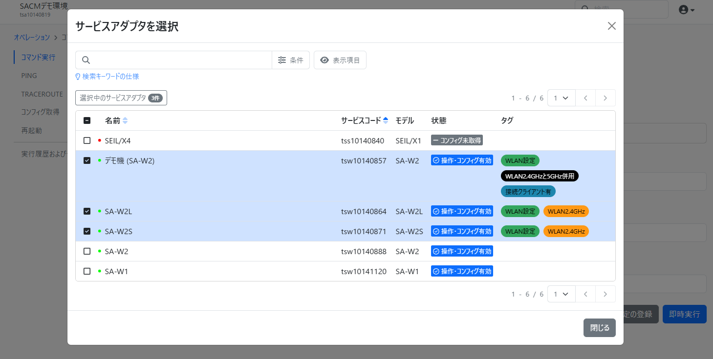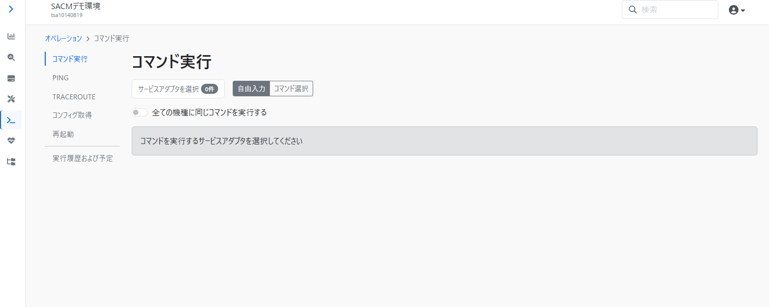複数の機種を同時に指定した場合は機種毎に個別のコマンドを実行することができます。また「全ての機種に同じコマンドを実行する」ことも可能です。