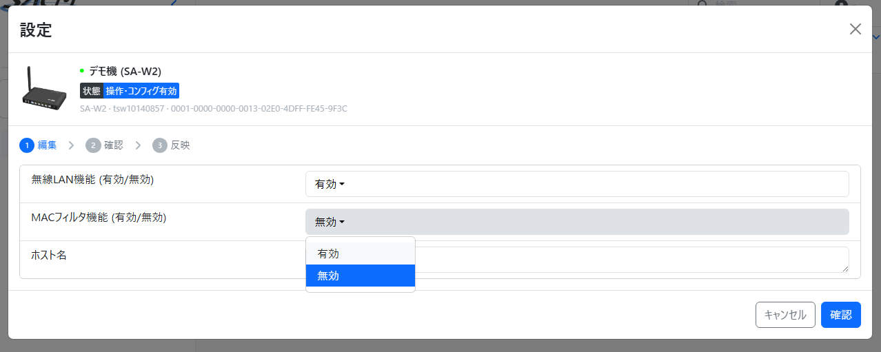 反映処理が完了するとコンフィグ画面へ戻ります。