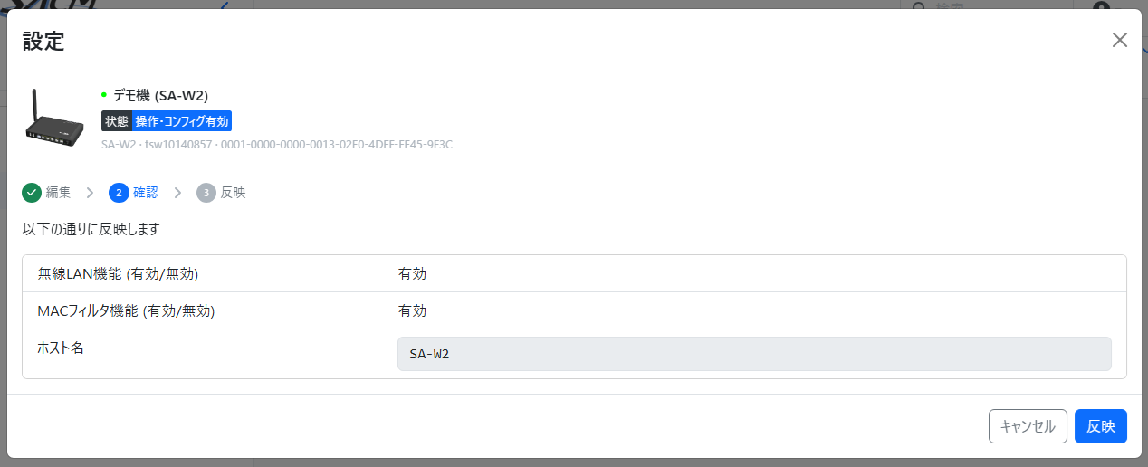 「反映」ボタンをクリックするとサービスアダプタへのコンフィグの即時反映が行われます。